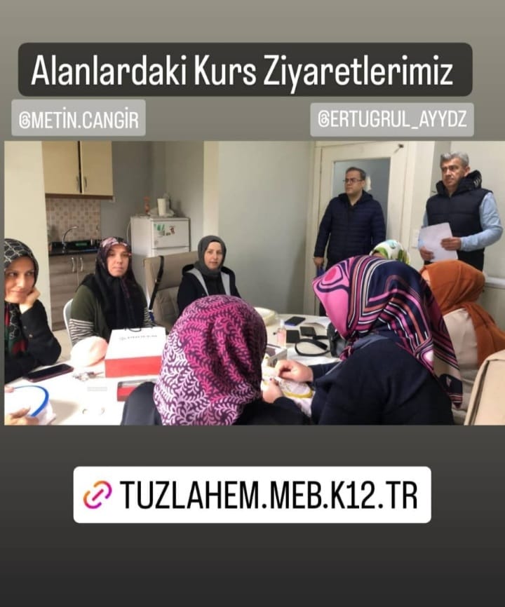 Tuzla Halk Eğitimi Merkezi Öğretmeni Figen Bozkurt’un idaresinde özellikle bayanların meslek edinmelerine katkı sağlayacak kurs ilk etapta; El işi, Pumch, Brezilya nakışı, iğne oyası, pul boncuk, tığ, kurdela etamin işi olarak devam edecek.
